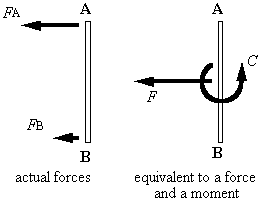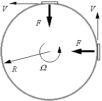 Let us examine the forces acting on a boomerang of radius a . The centre of the boomerang is moving at a constant forward speed V and the boomerang is spinning with angular velocity w as shown in the diagram. The 'top' end A is moving faster than V with speed V+aw and the 'bottom' end B is moving slower with speed V–aw . A wing generates more lift when it is moving faster so point A is generating more lift than point B. |