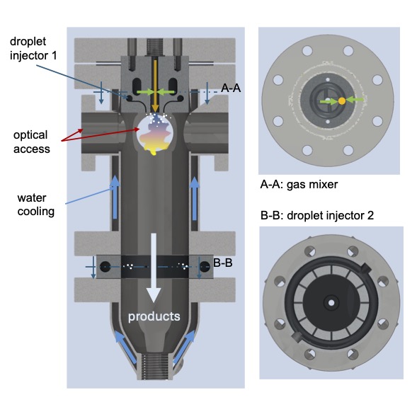 This project involves measurements of liquid water sprays for purposes of cooling hydrogen-oxygen combustion systems. We would like to characterise spray characteristics (particle size distribution and velocity) for potential candidate systems as a function of operating conditions, using particle doppler size anemomentry (PDPA).